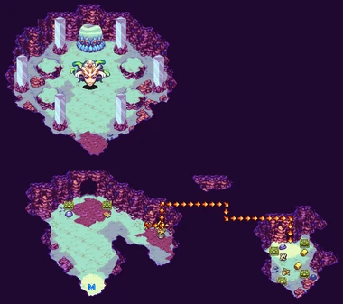 The Altar of Time is a dungeon in Sword of Mana. It's part of the arid region of Menos-Jadd at the south center of the world, and it's located at the east of the Jadd Desert, after activating a switch in Dune Maze and revealing the secret passage at the top of the cliff, where there is a sand rivers maze.