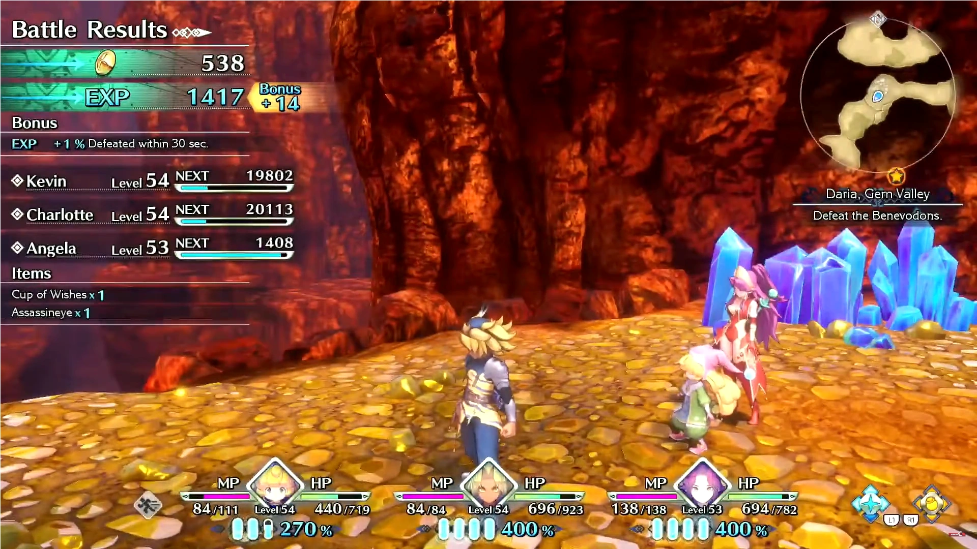 Battles Results show up on a pop-up menu appearing at the end of each battle in the 2020 remake of Trials of Mana.