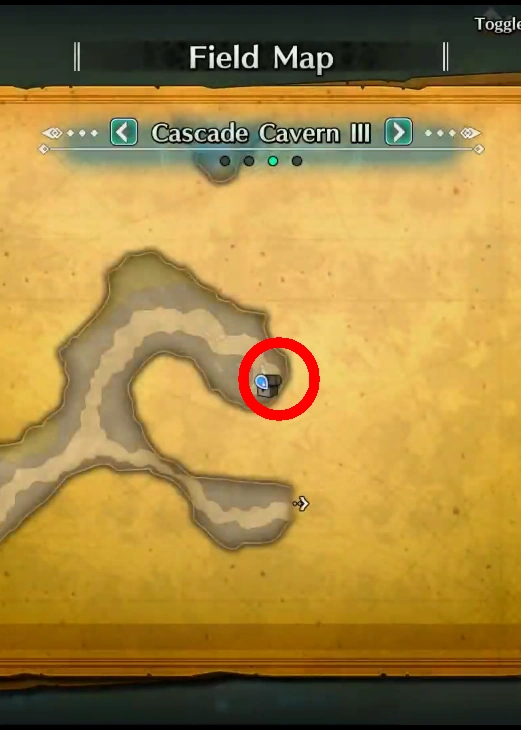 Cascade Cavern III On a narrow side path on the way to Cascade Cavern IV. Note : Available only after meeting the Priest of Light. |