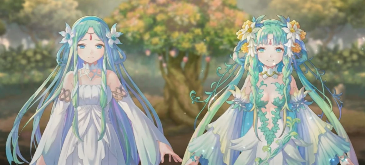 Dema and her younger twin sister Nona were born in the Mana Clan, the protectors of the Tree of Mana. Alas, this was the time when a young woman of the clan had to merge with the withering Tree to bloom it anew, becoming the new incarnation of the Mana Goddess.