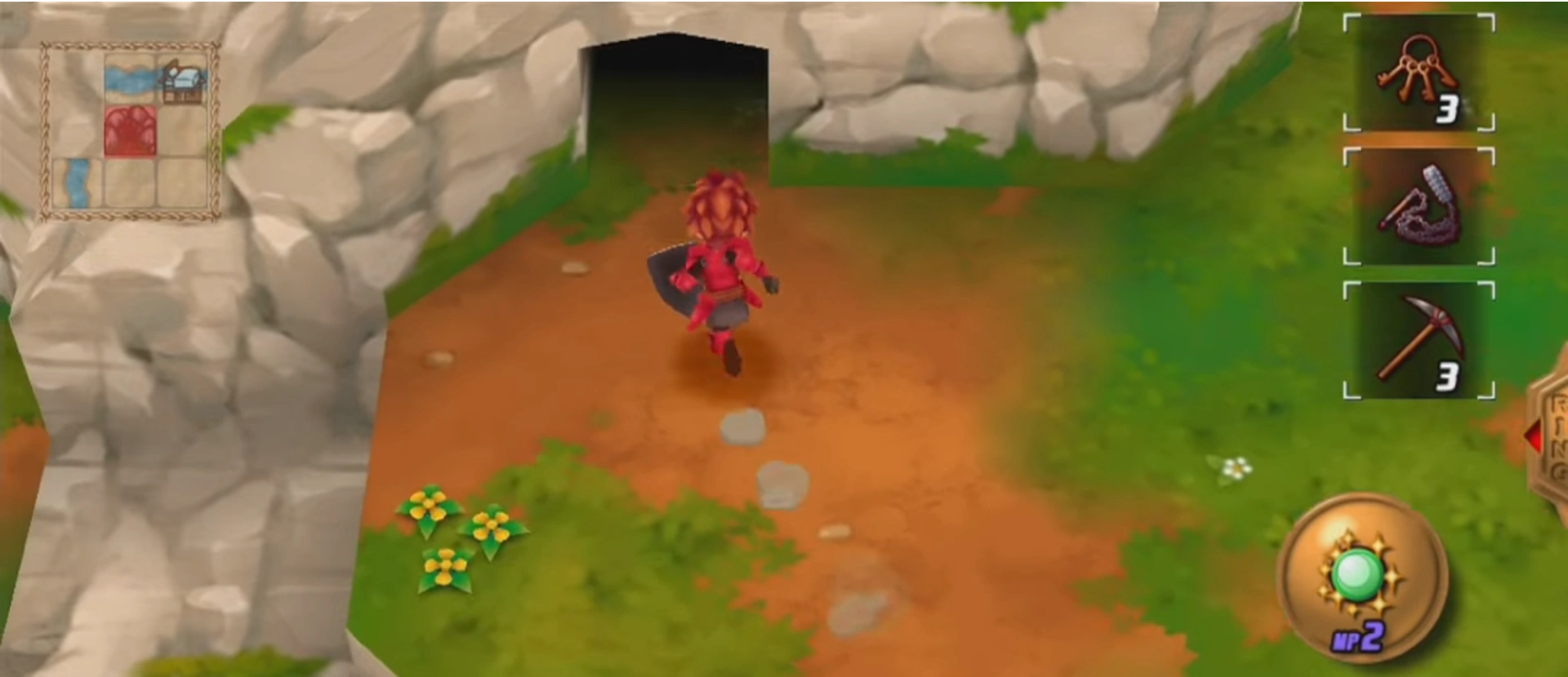 A dwarf named Watts has gone missing in the mines while he searches for the rare metal known as mythril, said to lie within. His fellow dwarfs ask Sumo to bring him back. But the mine cart used to navigate the caves and haul raw ore has been rusted in place for some time. Sumo learns of an oil peddler to the south that has the potent Rust-B-Gone and buys a tube. The lubricant works, perhaps too well, as Sumo jumps into the cart, which careens out of control and crashes, throwing him into a mining pit. He lands next to Watts, who agrees to go with him to help search for the mythril.