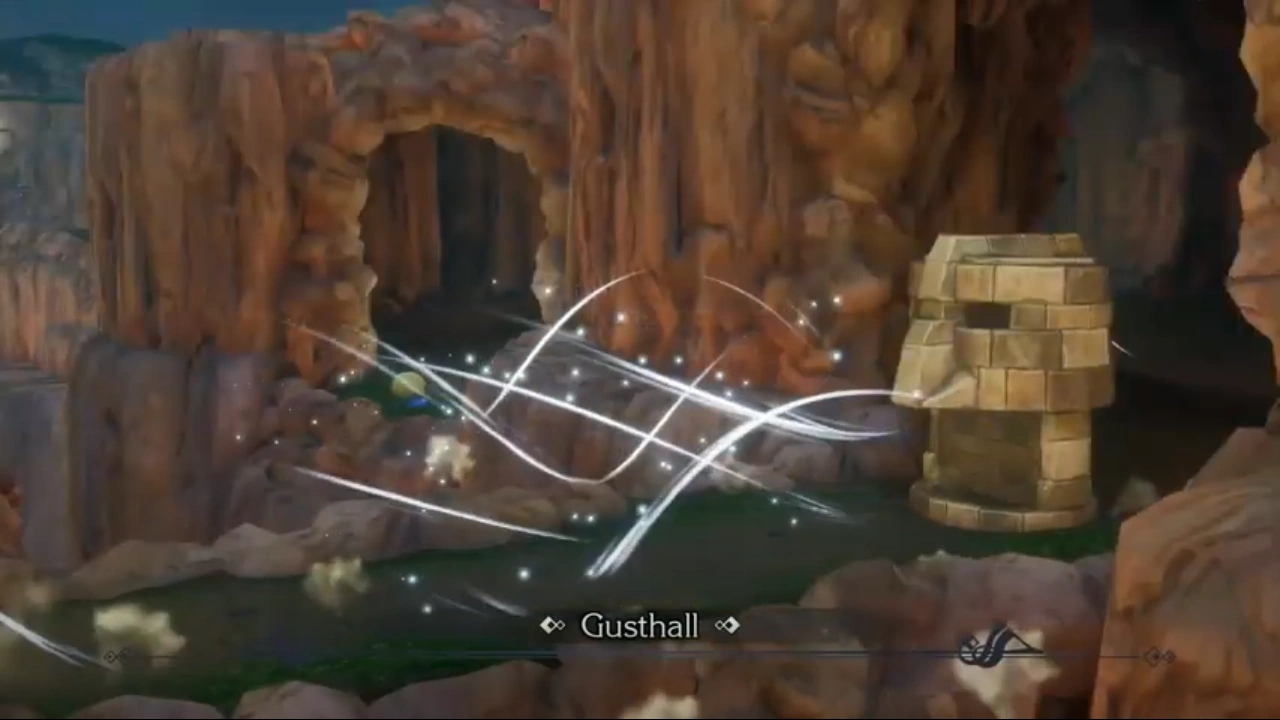 The Gusthall (called the Corridor of Wind in the fan translation) is a dungeon in Trials of Mana. The resting place of the Windstone, Gusthall is located midway between Laurent and Palo on the Heavensway, and is named for the brutal winds generated by a network of magic statues, all of which rotate in synchrony to create a path for those seeking to commune with the Windstone and its elemental, Sylphid.