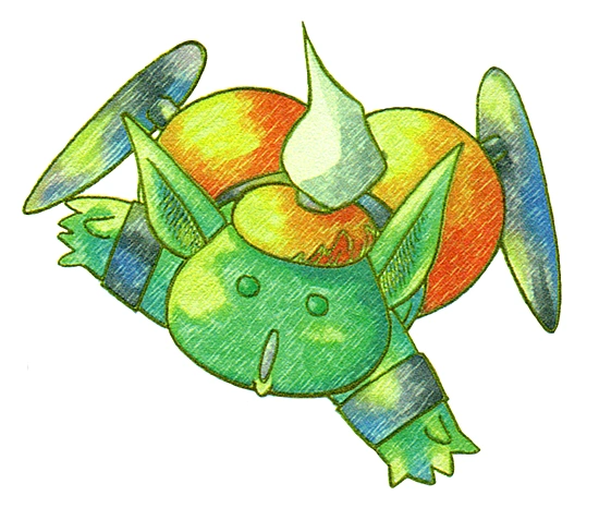 Sylphid is found in the Wind Palace after Randi and his friends overcome the Spring Beak. His spells include Thunder Saber, Analyzer, and Balloon for Primm, and Air Blast, Thunderbolt, and Silence for Popoi.