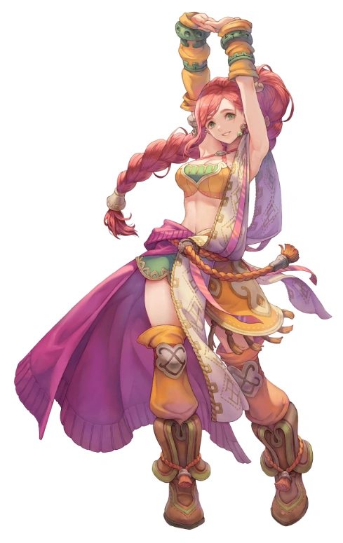 Some times later she relocated in Gaia and the Earth Village of Gudju, entering a romantic relationship with Eoren. She studied the soils in the mine with such passion that she was chosen by the Faerie (Visions of Mana) as the Alm of Earth.