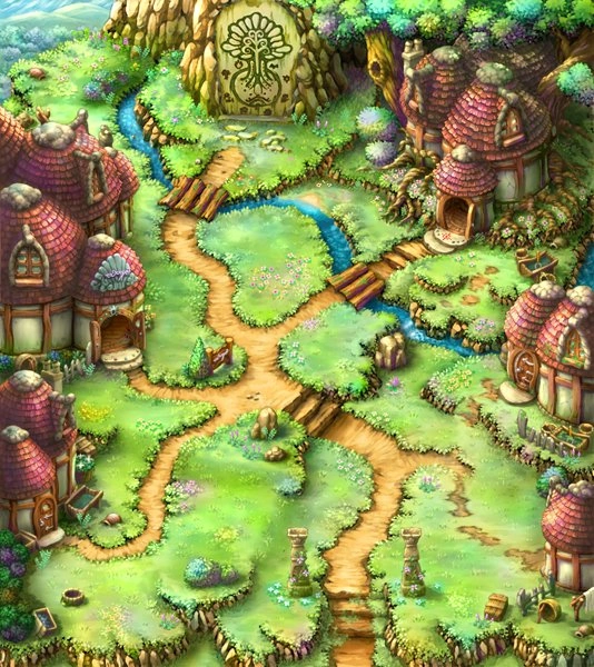 Mana Village is a small settlement on Illusia Isle and the home of the four playable characters. In terms of gameplay, it acts as the central hub location in which the player can purchase new items and equipment and sell their surplus, as well as take on myriad optional quests. Places of Interest are Mayor Moti's house, the Silver Mermaid (similar in function to a mall), an archive holding many books and research on Mana and related fields of research, and what appears to be the Door to Mavolia from Dawn of Mana. It is inhabited mostly by spirits and humans.