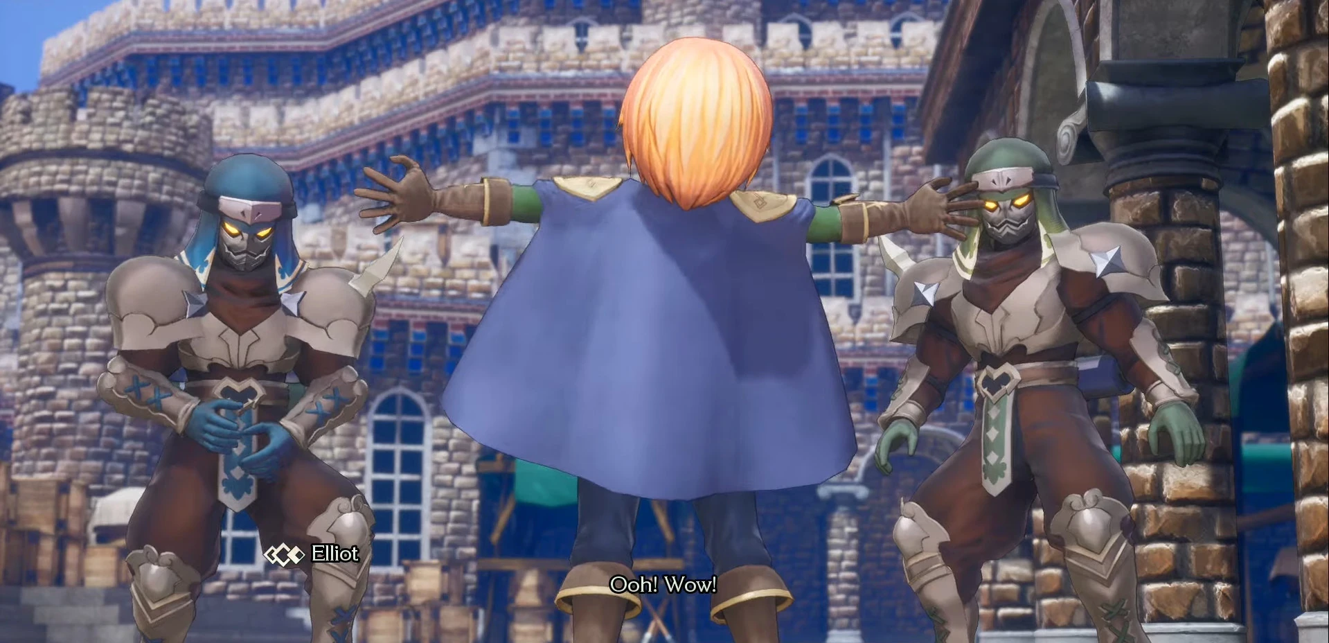 Alma seems surprised to see that Elliot isn't with her since he's always by her side. The old woman reminisces how the poor young prince never knew their dearly departed mother since she died during childbirth. Young Riesz swore to show her brother as much love and affection as she could to make up for the loss of their mother. Meanwhile, Elliot is seen wandering near the castle walls, where he is greeted by a mysterious magician who claims to be performing in these mountains.