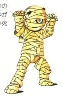 Mummy Man (ミイラ男): An immortal monster. If a person is trapped by his wrappings, their whole body goes numb and they are eventually suffocated to death. |
