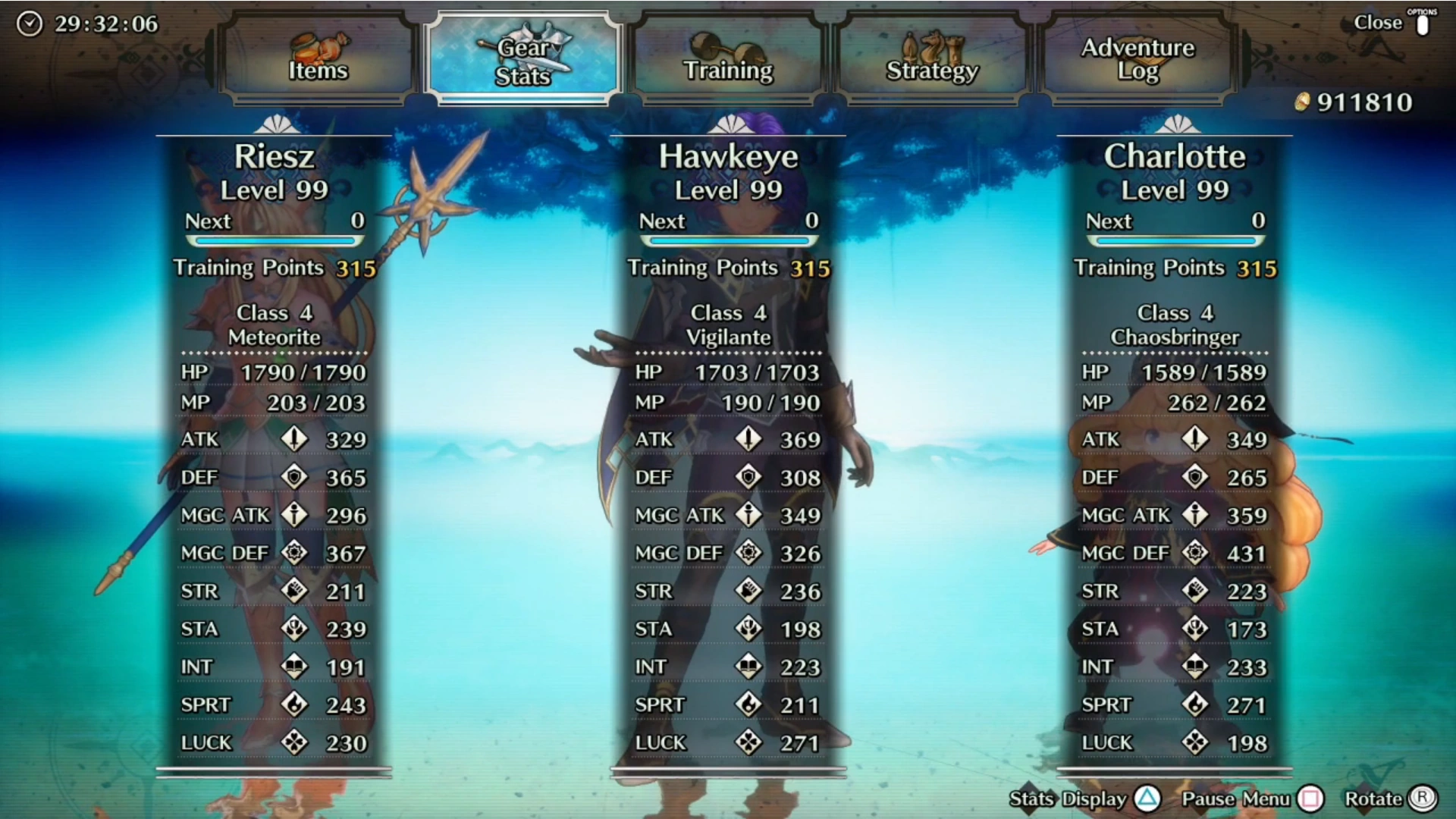 - Luck or LUCK influences many things in the game. It affects the rate of critical hits of physical attacks, how many "OK" icons that show up during trap roulettes, the rate the player get the rarer item drops from enemies. Additionally, the higher a character's Luck stat is, the less likely they are targeted by enemies's single target magic and special moves. This also rings true with getting hit with opponent's counter attacks when they are hit with a character's magic or tech. Finally, having high luck can prevent a character from dying from an enemy attack, surviving with 1 HP.